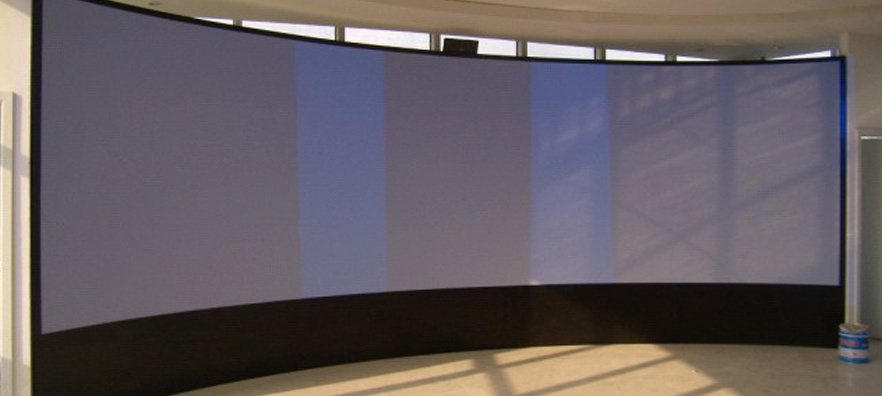 1、通过三台投影机搭建成超高分辨率的三维画面;